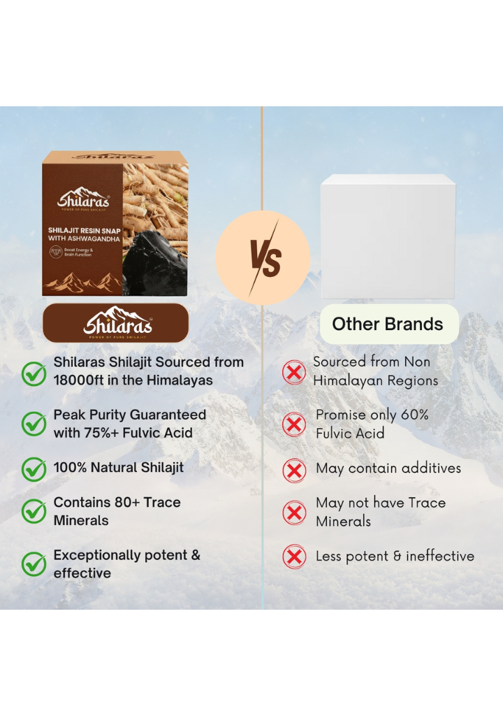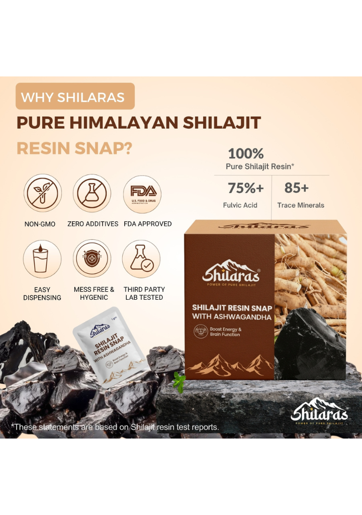 Shilaras comes in pre-measured, snap packs, which makes it super convenient to consume. We use only 100% pure Shilajit, sourced from the high altitudes of the Himalayas. Every batch is lab-tested for safety & authenticity, so you get exactly what your body needs – real, unadulterated Shilajit.